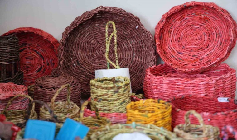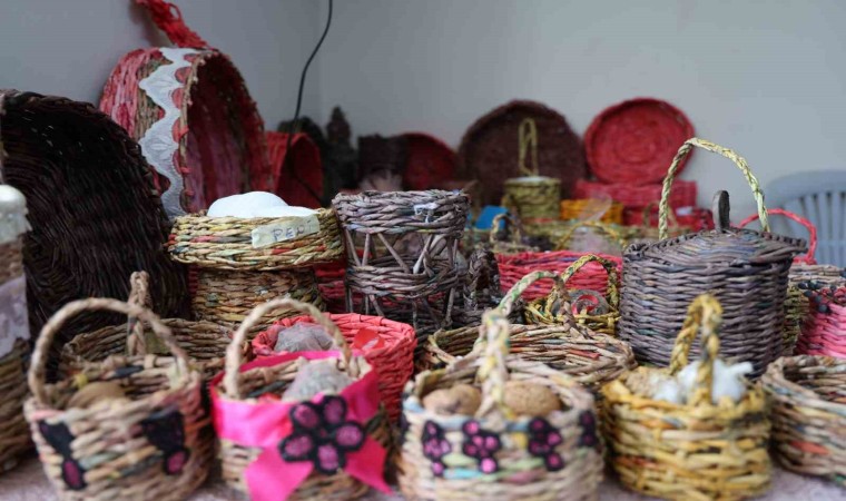 Kadınlara yönelik projeleriyle dikkatleri üzerine çeken İzmir’in Karabağlar ilçesi Refet Bele Mahallesi Muhtarı Hatice Akar’ın, halk eğitime yapmış olduğu başvuru sonucunda mahallesinde yaşayan ev hanımı kadınlar, yaklaşık 2 aydır atık kağıtlardan sepet örüyor. Çocuklarını okula, eşlerini işe gönderen kadınlar, hem zamanlarını boşa harcamıyor hem de üretip sattıkları sepetler sayesinde ev ekonomisine katkıda bulunuyorlar.