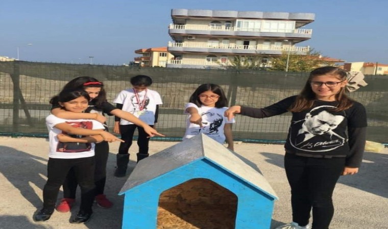 İzmir’in Aliağa ilçesinde eğitim-öğretim gören öğrenciler, aileleri tarafından hazırlanan el emeği ürünleri halk pazarında satarak elde ettikleri gelirler ile sokak hayvanları için barınaklar yaptı.