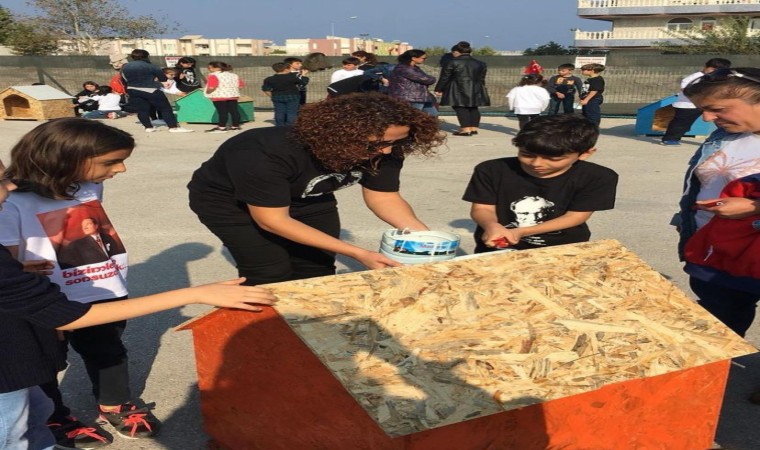 Milli duyguları yüksek, insanları ve hayvanları sevmek, yaşadığı şehre özen göstermek, ülkesine faydalı olmak kavramlarını öğrencilerine öğretmeyi kendilerine görev edinen Cumhuriyet İlkokul öğretmenlerinden Berna Güler ile Melek Özel, öğrencileriyle birlikte sokak hayvanları yararına takdir toplayan bir proje düzenledi. Öğrenciler, aileleri tarafından hazırlanan el emeği ürünleri, Aliağa Halk Pazarı’nda satarak elde ettikleri kazanç ile 10 adet köpek kulübesi, köpek maması ve kedi kumu aldı. Alınan ürünler ihtiyaç noktalarına ulaştırılırken, köpek kulübelerini kendi elleriyle boyayan öğrenciler, sokaktaki dostlarının soğuktan korunacağı barınakların hazırlığını yapmanın mutluluğunu yaşadı.