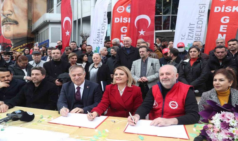 Toplu iş sözleşmesi, İzmit Belediye Başkanı Fatma Kaplan Hürriyet ve Genel-İş Sendikası Kocaeli Şube Başkanı Vedat Küçük tarafından imzalandı. Programda CHP Genel Başkan Yardımcısı Gökhan Zeybek de hazır bulundu.