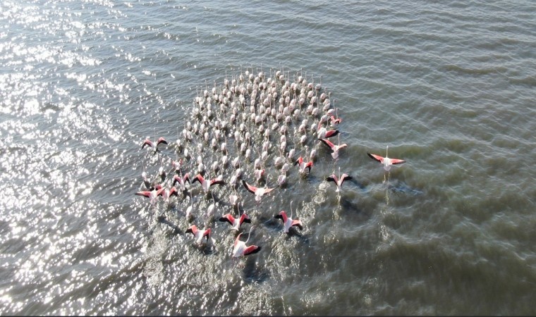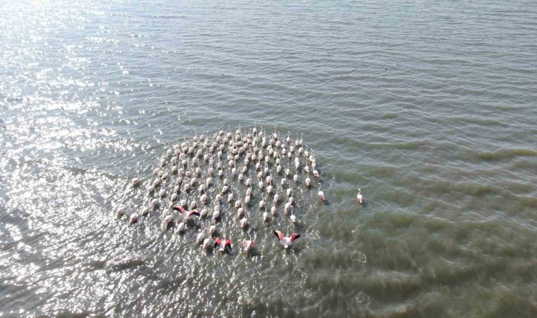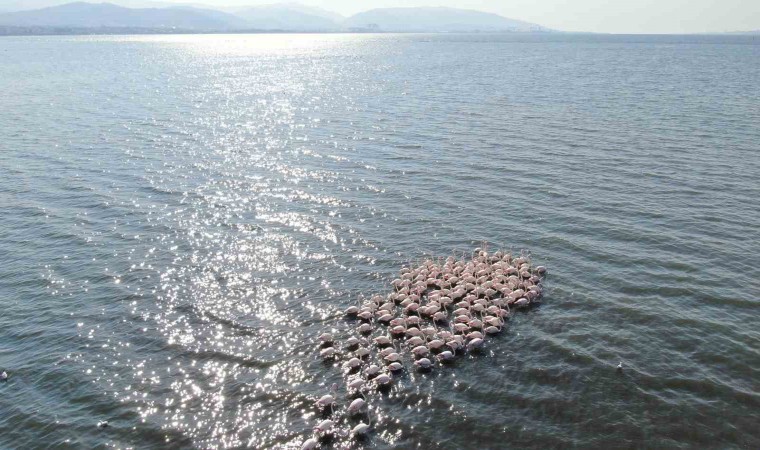 KOCAELİ (İHA) – İzmit Körfezi, allı turna olarak da bilinen flamingolara ev sahipliği yaptı. Yüzlerce flamingo, körfezde konaklayarak adeta görsel şölen sundu.