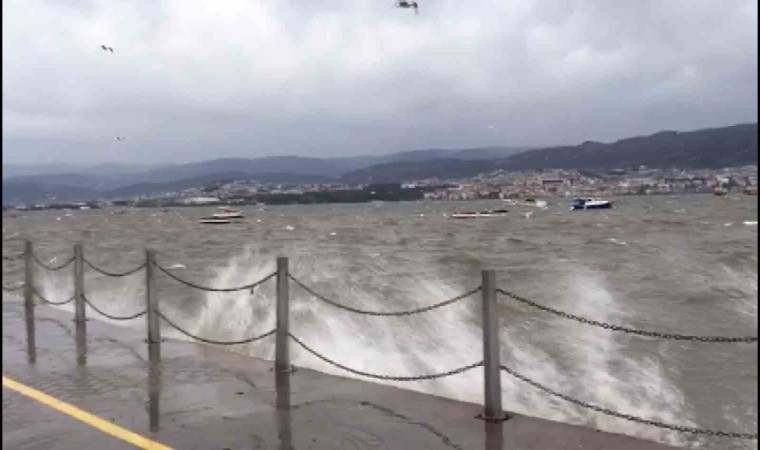 İzmit Körfezi’nde etkili olan fırtına sebebiyle dalgalar kıyıya vurdu, balıkçı tekneleri beşik gibi sallandı.