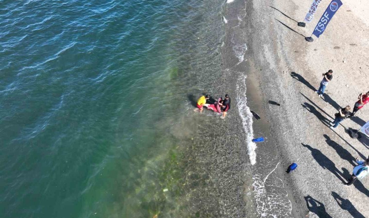Dördüncü senaryoda ise Değirmendere sahil şeridinde deprem sonucu 5 metre derinlikteki bir binada hava boşluğunda hayatta kalan vatandaşların güvenli bir şekilde su dışına çıkarılması ve karada ilk yardım uygulanarak profesyonel sağlık ekiplerine teslim edilmesi başarıyla gerçekleştirildi.
