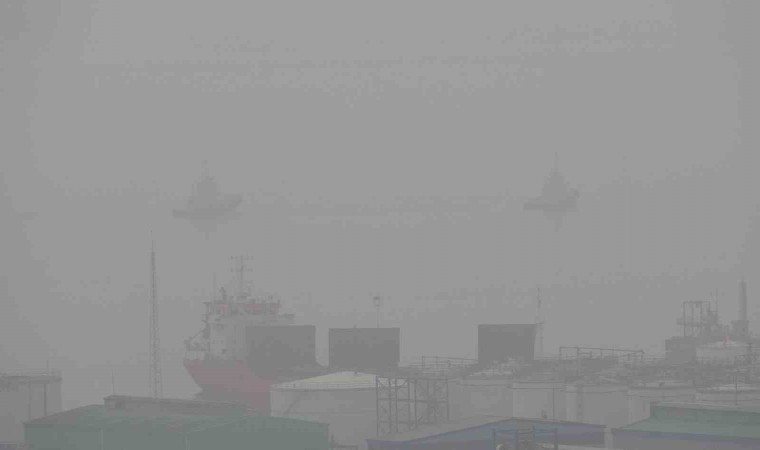 İzmit Körfezi’nde sabahın erken saatlerinden itibaren sis etkili oldu. Sis sebebiyle bazı gemilerin adeta silueti göründü.