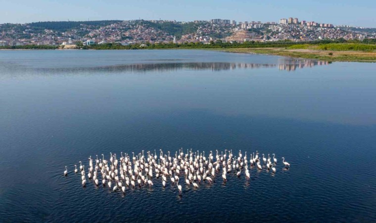 Kocaeli’nin önemli doğal zenginliklerinden İzmit Körfezi Sulak Alanı, son dönemde sayıları artan flamingolarla şenlendi. Su ve kıyı kuşu türlerinin göç yolu üzerindeki önemli duraklardan olan alan, göçmen kuşların beslenme ve barınma ihtiyaçları açısından ayrı önem taşıyor. Flamingoların kışlama noktası konumunda bulunan koruma altındaki sulak alan, gün batımında da ayrı bir görsel şölen sunuyor. İzmit Körfezi’ndeki zengin plankton, alg ve mikroorganizmalarla beslenen flamingolar, ağustos ve nisan ayları arasında sulak alanı kışlama bölgesi olarak kullanıyor. Flamingolar için vazgeçilmez bir dinlenme ve beslenme noktası olan İzmit Körfezi Sulak Alanında bu pembe renkli güzel kuşlarla ayrıca görsel bir şölen oluşturuyor. Flamingoların her yıl sayılarının artarak burayı tercih etmesi Büyükşehir’in çevreye yönelik başarılı projeleriyle sulak alandaki ekolojik iyileşmenin etkileri için de önemli bir gösterge oluşturuyor.