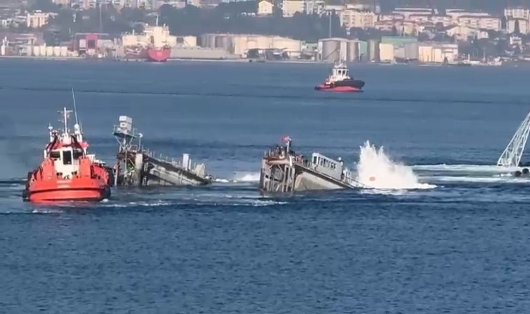 Öte yandan, yüzer havuzun battığı anlar saniye saniye kameraya yansıdı. Görüntüde, yüzer havuzdan İzmit Körfez’ine atlayan kişilerin olduğu görülüyor.
