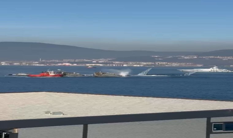Kocaeli’nin Başiskele ilçesinde bulunan Yachtley Tersanesi’ne ait yüzer havuzun battığı anlar kameraya yansıdı. Yüzer havuzda bulunanların denize atladığı görüldü.