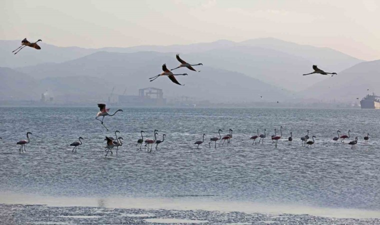 Kocaeli’nin önemli doğal zenginliklerinden İzmit Körfezi Sulak Alanı, son dönemde sayıları artan flamingolarla şenlendi.