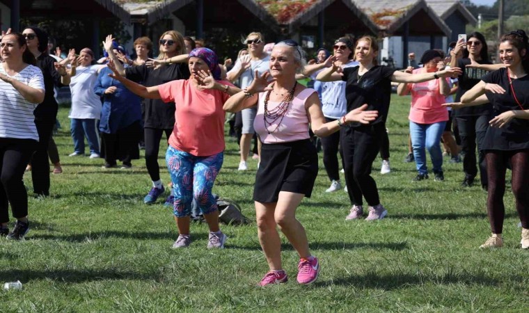 Sarısu Gençlik Kampı’nda zumba etkinliğine katılan 150 kadın hem spor yaparak eğlendi hem de açık havanın tadını çıkardı.