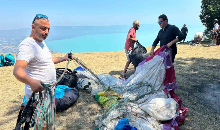 İznik Gölü’nde yamaç paraşütü etkinliğini başlatan profesyonel yamaç paraşütçüsü Şahin Yılmaz, “Taleplere yetişmekte zorlanıyoruz. Bursa Orhangazi Gölyaka Gürle Dağı’nda 1160 metre yükseklikteyiz. Buradan İznik Gölü’nün turkuaz rengini tepeden paraşütle geçeceğiz” diye konuştu.