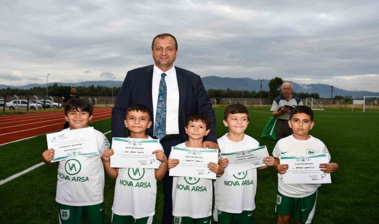İznikspor’da Yaz Futbol Okulu’nu bitiren gençlere sertifikalarını Belediye Başkanı Kağan Mehmet Usta takdim etti.