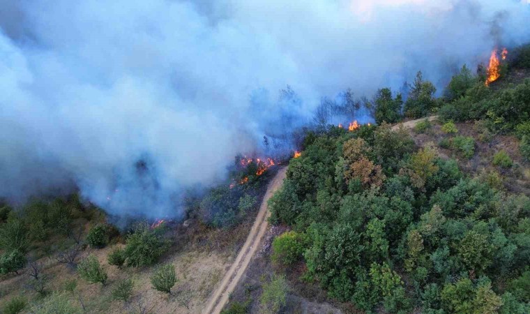 Öte yandan yangın bölgesi de İHA’nın dronu ile havadan görüntülendi