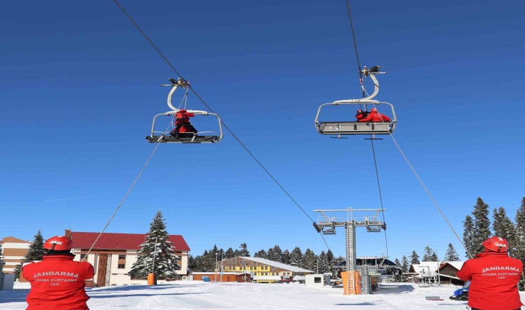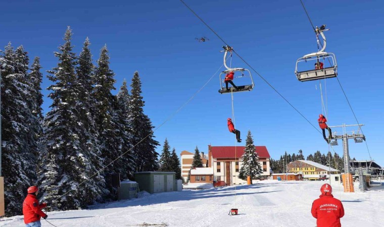 Türkiye’nin önemli kış turizmleri arasında yer alan Çankırı ve Kastamonu illeri sınırlarında bulunan ve Türkiye’nin önemli kış turizm merkezleri arasında yer alan Ilgaz Dağı Milli Parkı içerisinde kış sezonu hazırlıkları devam ediyor. Güvenlik tedbirleri çerçevesinde hazırlıklarını tamamlayan Kastamonu İl Jandarma Komutanlığı’na bağlı Jandarma Arama Kurtarma (JAK) Timleri, Ilgaz Dağı Kayak Merkezinde ihtimal kazaların önüne geçmek ve acil durumlarda hızlı müdahale edebilmek amacıyla tatbikat gerçekleştirdi. Tatbikat senaryosu gereğince telesiyejde mahsur kalan vatandaşlar kurtarıldı.