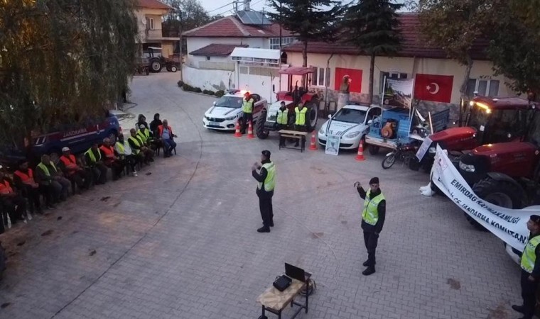 Afyonkarahisar İl Jandarma Komutanlığı Trafik Şube Müdürlüğüne bağlı jandarma trafik timleri tarafından Emirdağ ilçesi Yenikapı köyünde traktör, pat pat kullanan 30 sürücü ve yayaya