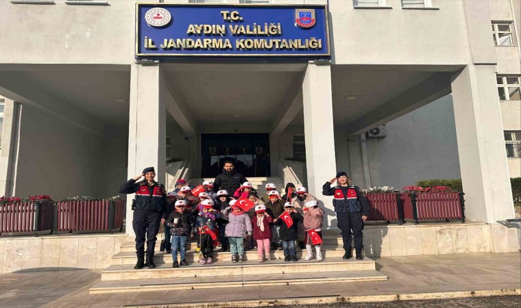 Aydın İl Jandarma Komutanlığı’nı ziyaret eden anaokulu öğrencileri, jandarmayı daha yakından tanıdı.