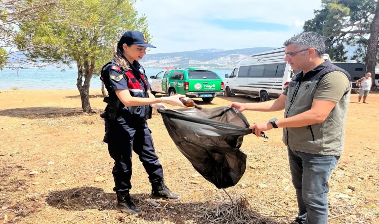 Aydın’ın Didim ilçesinde sahaya inen jandarma ekipleri, atık camların mercek görevi gördüğüne dikkat çekerek, vatandaşlarla birlikte doğadaki atık camları topladı.