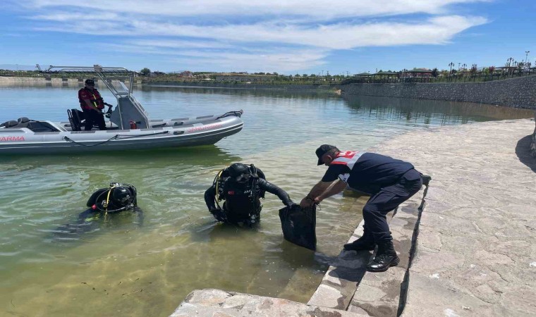 Malatya’da, İl Jandarma Komutanlığına bağlı Jandarma Sualtı Arama Kurtarma (SAK) Timinde görevli dalgıçlar, baraj gölünde temizlik yaptı.