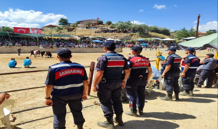 Aydın’ın Germencik ilçesinde düzenlenen boğa güreşinde jandarma ekipleri güvenlik tedbiri aldı.