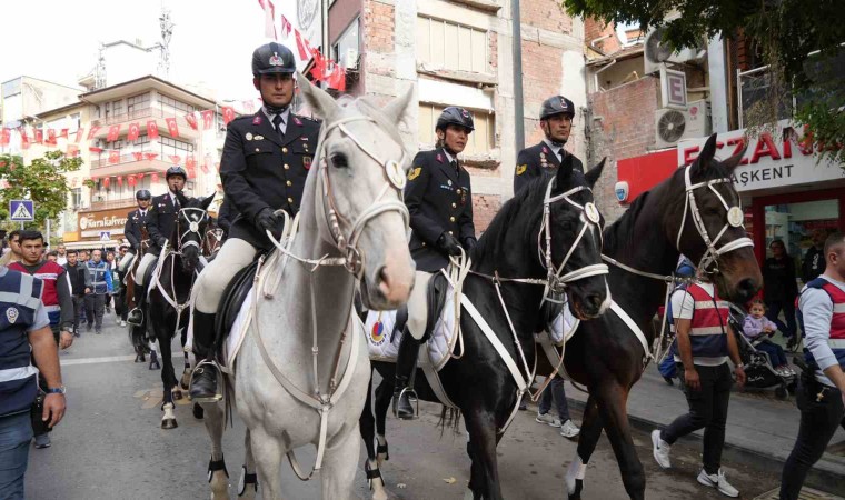 İçişleri Bakanlığı Jandarma Genel Komutanlığı’na bağlı Çelik Kanatlar ile Mehteran Takımı ve Atlı Birliği çeşitli etkinlikler düzenledi. Cumhuriyet’in 100. yılı dolayısıyla yapılan etkinlik, Zafer Caddesi’nden kortej yürüyüşüyle başladı. Kortej yürüyüşünde Mehteran Takımı çeşitli marşlar seslendirdi, Jandarma Komandolar ve Atlı Birlik de yürüyüşte yer aldı. Çevredeki vatandaşlar ise jandarma ekiplerine sevgi gösterisinde bulundu, bazıları ise cep telefonu ile çekim yaptı.