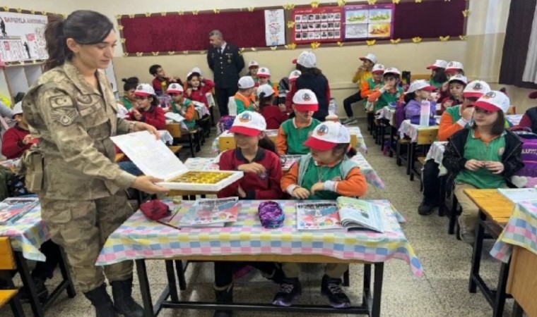 Gaziantep İl Jandarma Komutanlığı ekipleri, ’Dünya Çocuk Hakları Günü’nde ilkokul çocuklarına çeşitli hediyeler verdi.