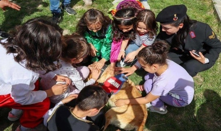 Kadın astsubaylar tarafından Jandarmanın imkan ve kabiliyetleri sergilenerek meslek tanıtımı yapılıp Jandarma Çocuk dergisi dağıtıldı.