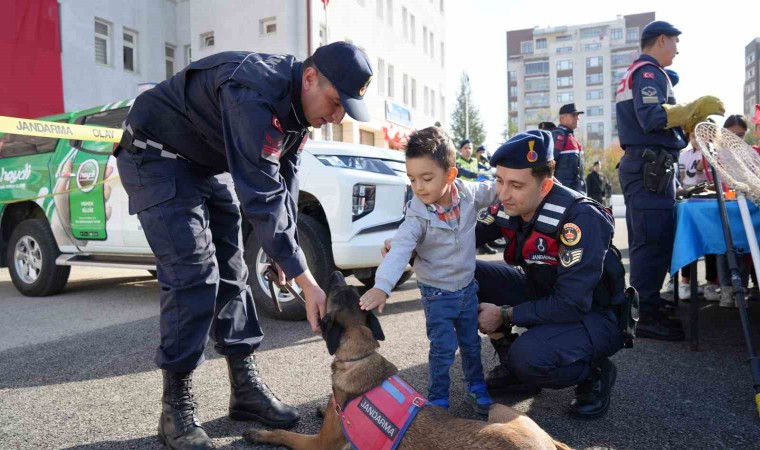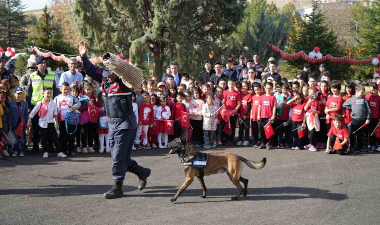 Kırıkkale’de jandarma personeli tarafından Cumhuriyet’in 100. yıl dönümü dolayısıyla öğrencilere yönelik düzenlenen etkinlikte, jandarmanın faaliyetleri ve ekipmanları hakkında bilgiler verildi. Asayiş köpeği "Tutar"ın yaptığı gösteri de öğrencilerin ilgisini çekti.