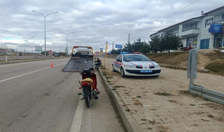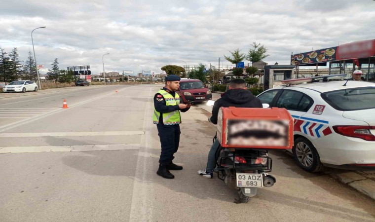 Jandarmanın motosiklet kazalarının önüne geçmek için yaptığı aralıksız denetimler son olarak İhsaniye ilçesine bağlı Gazlıgöl beldesinde gerçekleşti. Denetimlerin amacı motosiklet kazalarının önüne geçmek ve belgesiz motosiklet kullanımının önlenmesi olduğu aktarıldı. Jandarma ekipleri plakası olmayan şüpheli bir motosikleti durdurdu. Araçta ve çeşitli suçlardan arama kaydının olduğu öğrenilen sürücünün üzerinde çok miktarda uyuşturucu madde ele geçirdi. Sürücü ve yanında bulunan yabancı uyruklu şahıs jandarma ekipleri tarafından gözaltına alındı.