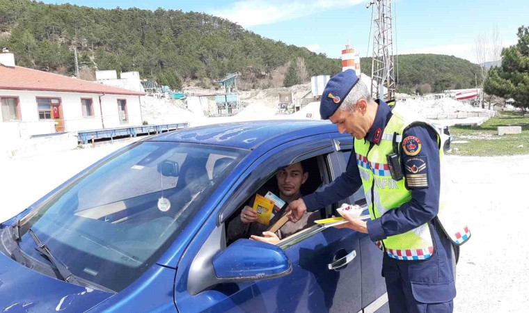 Bolu’nun Mudurnu ilçesinde jandarma ekipleri sürücülerin hız sınırını aşmayıp güvenli yolculuk etmesi konusunda uyarılarda bulunarak şeker ikramında bulundu.