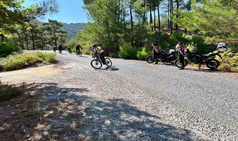Aydın’da Koçarlı ve Karpuzlu ilçeleri arasında gerçekleştirilen helikopterli bisiklet faaliyetinde jandarma ekipleri güvenlik önlemi aldı.