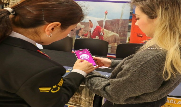 Eskişehir’de 25 Kasım Kadına Yönelik Şiddete Karşı Uluslararası Mücadele Günü’nde stant açan jandarma ekipleri, erkeklere ’Kadına EL KAL-KA-MAZ!’ sloganı hakkında bilgilendirmede bulundu.