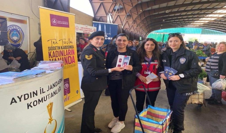 Aydın’da jandarma ekipleri tarafından ’25 Kadım Kadına Yönelik Şiddete Karşı Uluslararası Mücadele Günü’ çerçevesinde vatandaşlar bilgilendirildi.