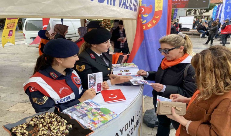 Aydın İl Jandarma Komutanlığı Aile içi şiddetle Mücadele Kısım Amirliği, Çevre Timi ve Efeler İlçe Jandarma Komutanlığınca ’25 Kasım Kadına Yönelik Şiddete Karşı Uluslararası Mücadele Günü’ kapsamında Atatürk Kent Meydanı’nda Aydın İl Emniyet Müdürlüğü Asayiş Şube Müdürlüğü Aile İçi ve Kadına Karşı Şiddetle Mücadele Büro Amirliği ile Aydın Aile Sosyal Hizmetler İl Müdürlüğü’nün katılımıyla stant kuruldu. Jandarma ekipleri durumsal farkındalık oluşturmak amacıyla ’kadına şiddete sıfır tolerans’ mottosuyla bilgilendirmelere bulundu. Faaliyette kadın vatandaşlara 6284 Sayılı Kanun, Elektronik Kelepçe, KADES Uygulaması erkek vatandaşlara da ’kadına el kalkamaz’ konularında bilgilendirme yapılarak broşür dağıtımı yapıldı. Çocuklara Türk bayrağı ile jandarma boyama kitabı dağıtıldı.