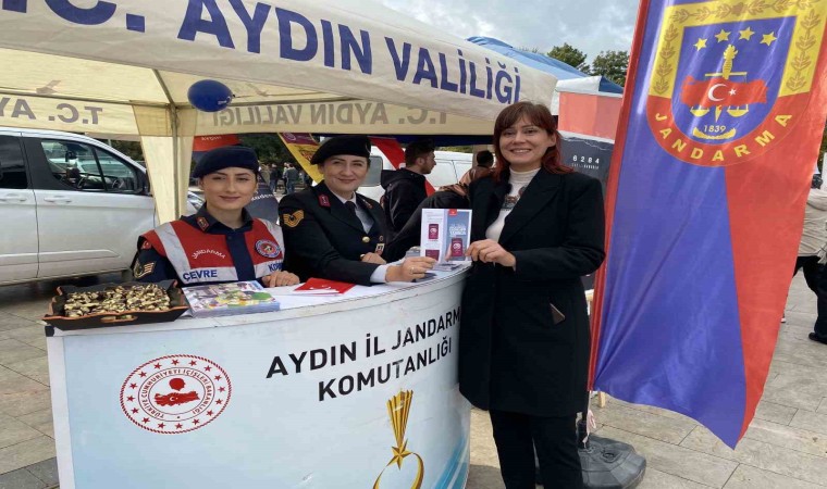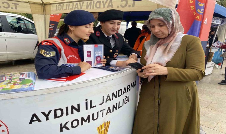 Aydın’da jandarma ekipleri ’25 Kasım Kadına Yönelik Şiddete Karşı Uluslararası Mücadele Günü’ çerçevesinde kurdukları stantla vatandaşları bilgilendirdi.