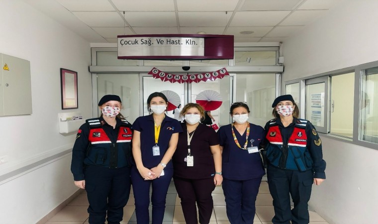 Aydın İl Jandarma Komutanlığı Aile İçi Şiddetle Mücadele ve Çocuk Kısmı personeli, 2-8 Kasım Lösemili Çocuklar Haftası dolayısıyla anlamlı bir ziyaret gerçekleştirdi. Adnan Menderes Üniversitesi Hastanesi’nde tedavi gören ve lösemiyle mücadele eden çocuklar ve aileleriyle bir araya gelen jandarma ekipleri, çocuklara ve ailelerine moral ve destek oldu.