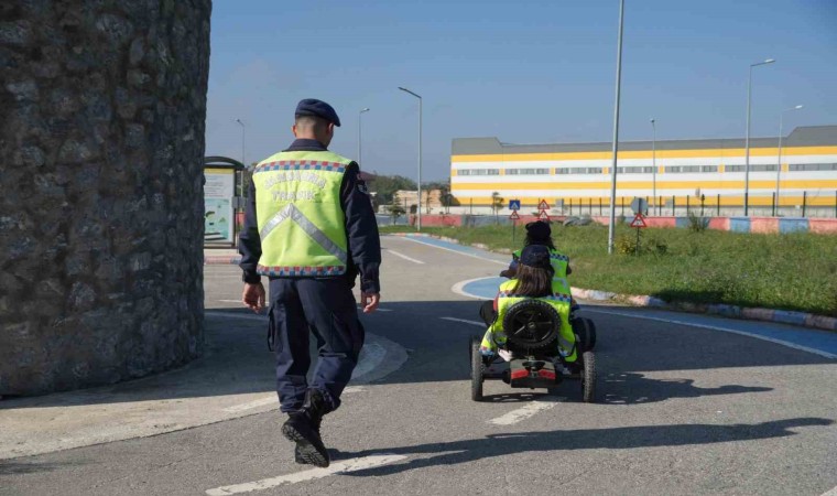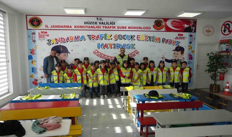 DÜZCE (İHA) – Düzce İl Jandarma Komutanlığına bağlı trafik ekipleri, ilkokul öğrencilerine trafik kurallarını uygulamalı bir şekilde anlatmaya devam ediyor.