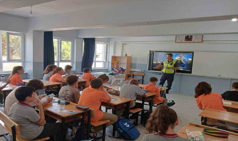 Aydın’da jandarma ekipleri ’Trafik Dedektifleri’ projesi kapsamında okullarda eğitim gören öğrencileri trafik kuralları hakkında bilgilendirerek eğitim verdi.