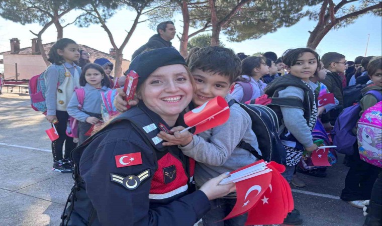 Aydın İl Jandarma Komutanlığı Aile içi Şiddetle Mücadele ve Çocuk Kısım Amirliği, Sultanhisar İlçe Jandarma Komutanlığı ve Köpek Unsurları Sultanhisar Eskihisar İlköğretim Okulu’nu ziyaret etti. Geleceğin teminatı olan öğrencilerin 2024-2025 Eğitim ve Öğretim yılı yarı yıl tatili karne dağıtım törenlerine de katılan jandarma ekipleri öğrencilere Türk bayrakları ile birlikte küçük hediyeler vererek karnelerini ödüllendirdi.