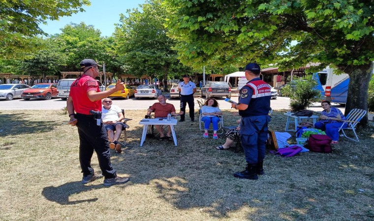 Zonguldak İl Jandarma Komutanlığı ekipleri Filyos Sahili’nde denize giren vatandaşları boğulma olaylarına karşı uyardı.