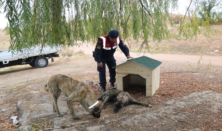 Kırıkkale’de jandarma ekipleri tarafından gece fark edilmeleri amacıyla sahipsiz köpeklere reflektörlü tasma takıldı, birçok noktaya da kulübe konuldu.