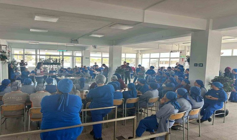 Aydın’ın Söke ilçesinde jandarma ekipleri bir işletmede çalışan kadınlara uyuşturucu madde kullanımının önlenmesi ve alınacak tedbirlere karşı bilgilendirmelerde bulundu.