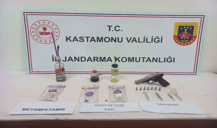 Ayrıca jandarma ekipleri, il merkezinde C.T. isimli şahsın üst ve ikametinde yaptığı aramada metamfetamin, sentetik ecza hapı, 1 adet ruhsatsız tabanca ve tabanca fişeği ele geçirdi.