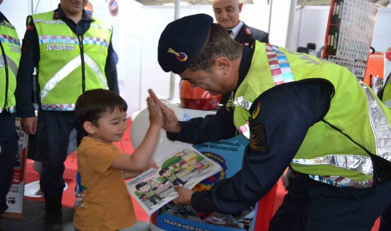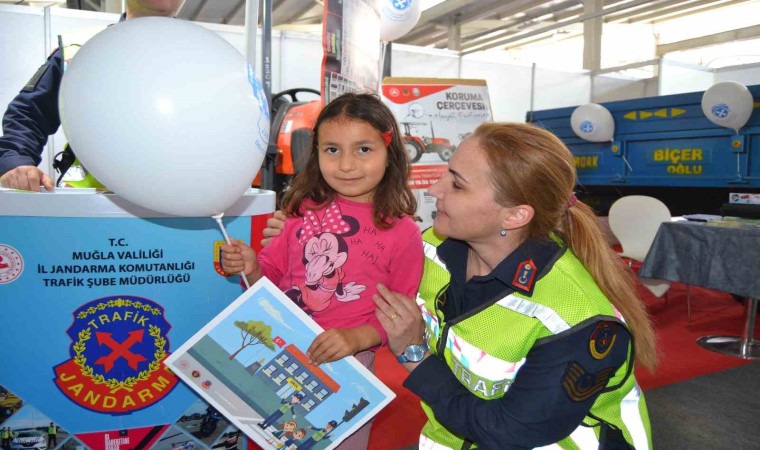 Fethiye’de kurulan tarım ve turizm fuarında jandarma ekipleri vatandaşları trafik güvenliği konusunda bilgilendirdi.