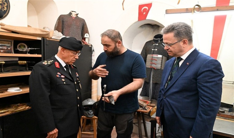 Jandarma Genel Komutanı Orgeneral Arif Çetin, Valilik ziyareti sonrasında Vali Enver Ünlü ve beraberindeki heyet ile birlikte II. Beyazıt’ın eşi Hüsnüşah Hatun tarafından yaptırılan ve 520 yıllık geçmişe sahip tarihi Kurşunlu Han’ı ziyaret etti. Kurşunlu Han’da bulunan geleneksel el sanatları atölyelerini gezerek kurslarda yapılan ürünler hakkında eğitmenlerden bilgi alan Orgeneral Çetin, “Böylesine tarihi bir mekanda, kültürel değerlerimizin yaşatılması ve yeni nesillere aktarılması büyük bir önem taşıyor. Burada yapılan çalışmaların ne kadar değerli olduğunu görmek bizleri mutlu etti” ifadelerini kullandı.