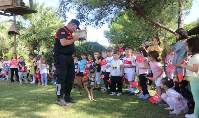 Aydın İl Jandarma Komutanlığı Aile İçi Şiddetle Mücadele ve Çocuk Kısım Amirliği ile Çevre, Doğa ve Hayvanları Koruma Tim Komutanlığı koordinesinde Aydın Efeler Kübra Ana Anaokulu öğrencileri 4 Ekim Hayvanları Koruma Günü faaliyetleri çerçevesinde “Onlar Bizim Mesai Arkadaşlarımız” mottosuyla Jandarmayı tanıtmak, çevre, doğa ve hayvan sevgisinin aşılamak maksadıyla Aydın İl Jandarma Komutanlığında ağırlandı. Çocuklar için Jandarma Köpek Timleri gösteriler yaparken, çocuklar çeşitli hediyeler ile uğurlandı.