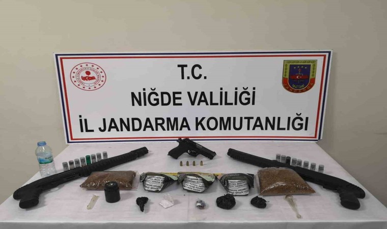 Niğde İl Jandarma Komutanlığı ekiplerince yapılan operasyonda uyuşturucu madde ve silah ele geçirildi.