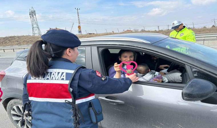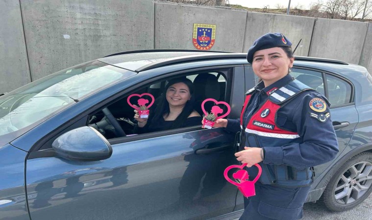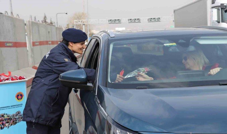 Başkentte jandarma ekipleri yol kontrol noktalarında kadın şoför ve yolcuların 8 Mart Dünya Kadınlar Günü’nü kutladı.