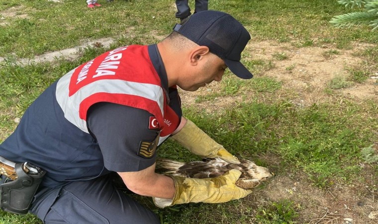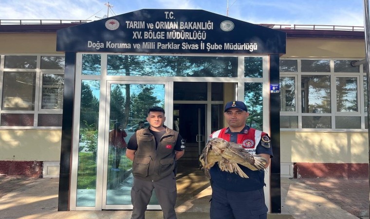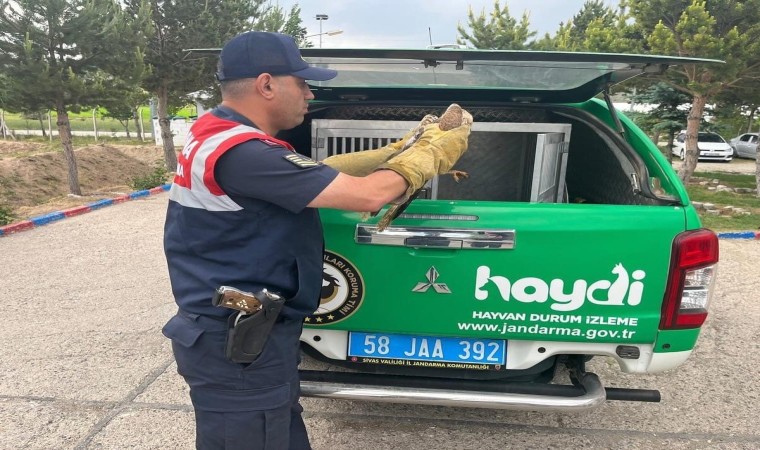 Sivas’ta kanadından yaralı halde bulunan şahine adeta jandarma kanat oldu.