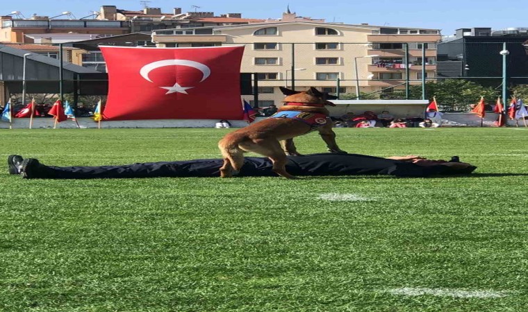 Nevşehir’de 29 Ekim Cumhuriyet Bayramı kutlamalarında gösteri yapan jandarma köpeği Nefes, izleyenlerden tam not aldı. Eğiticisine kalp masajı yapıp, şınav çeken Nefes, gösteri sonunda esas duruşa geçerek protokol üyelerini selamladı.