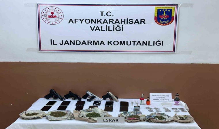 Afyonkarahisar’da metruk bir eve uyuşturucu baskını düzenleyen jandarma ekipleri 190 gram esrar ve 4 adet kurusıkı tabanca ele geçirildi.