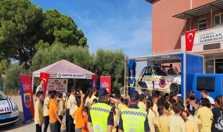 Aydın’da jandarma ekipleri Kuyucak ilçesinde öğrencilere emniyet kemeri takmanın önemini anlattı.